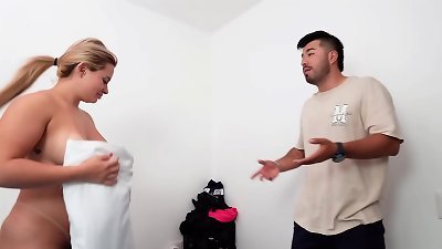 摩洛伊斯兰解放阵线 Lolly Dames 操她的丈夫,而他看到她厚实的胸部被砸碎